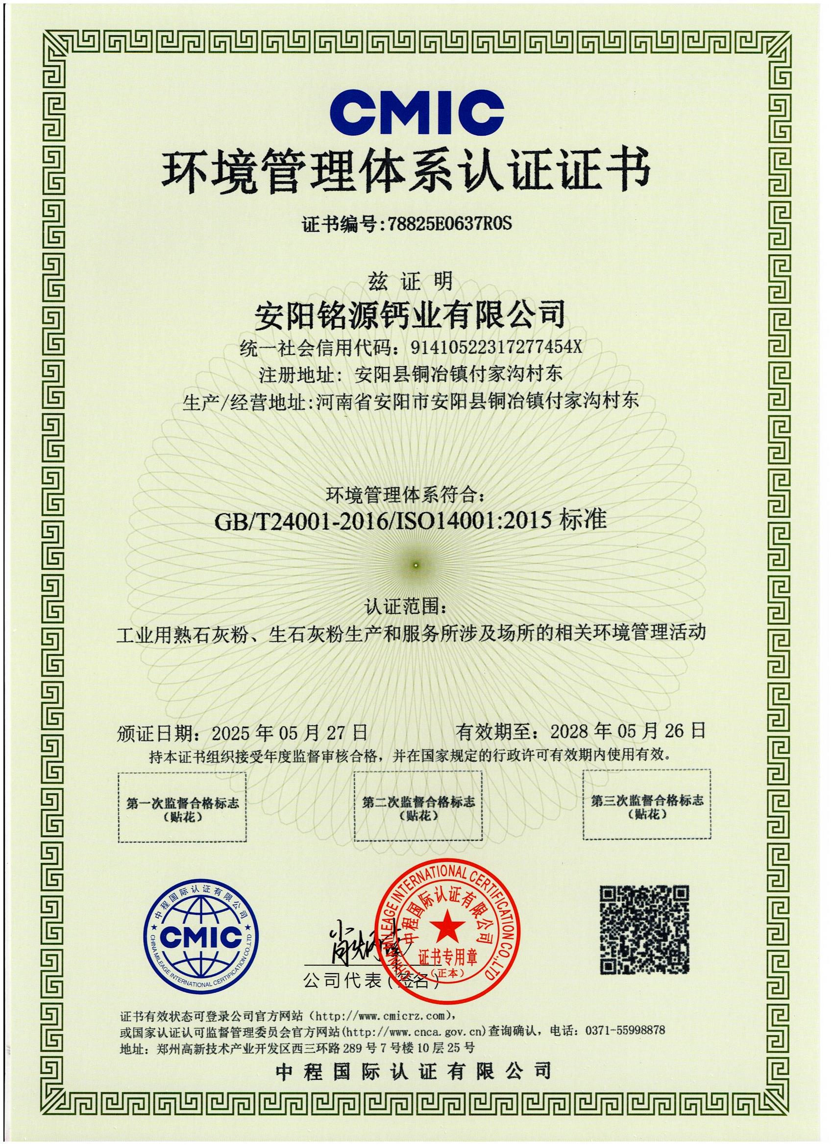 環境管理體系認證證書